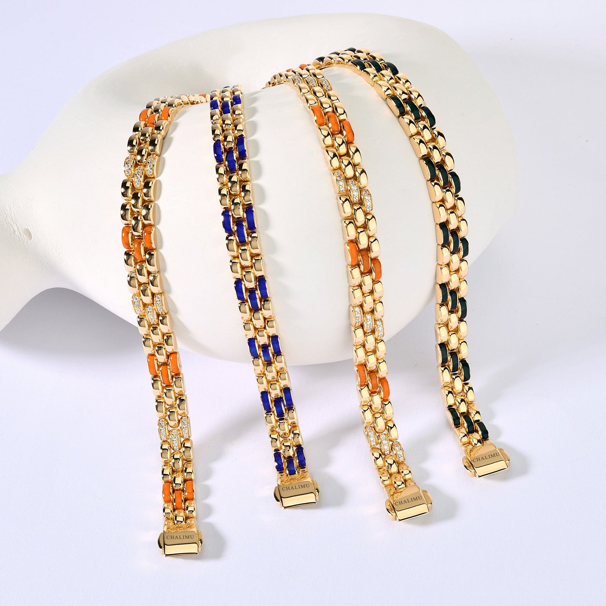 CHALIMU 9MM 14K Goldarmband mit tiefblauer Emaille