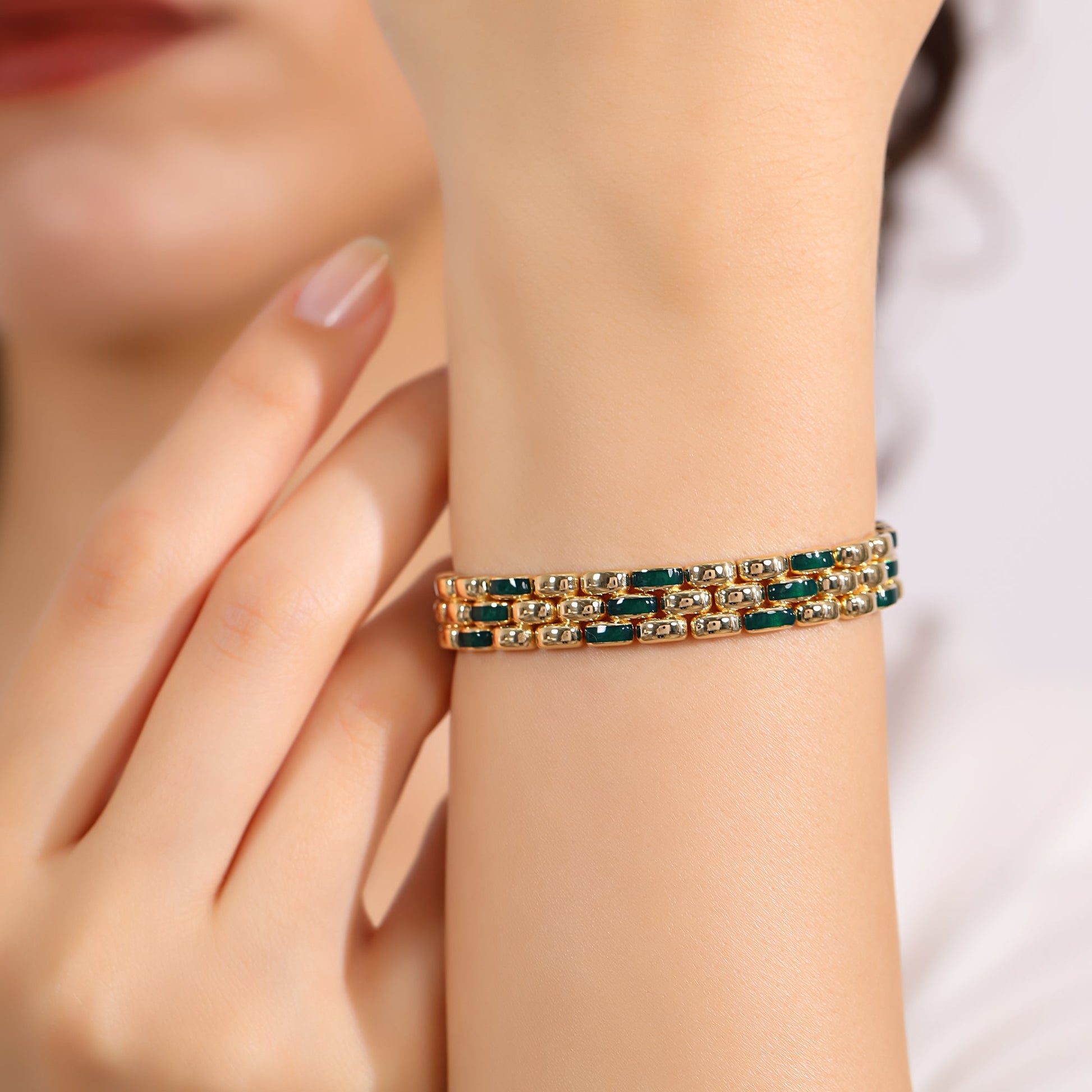 CHALIMU 9MM 14K Goldarmband mit grünem Email