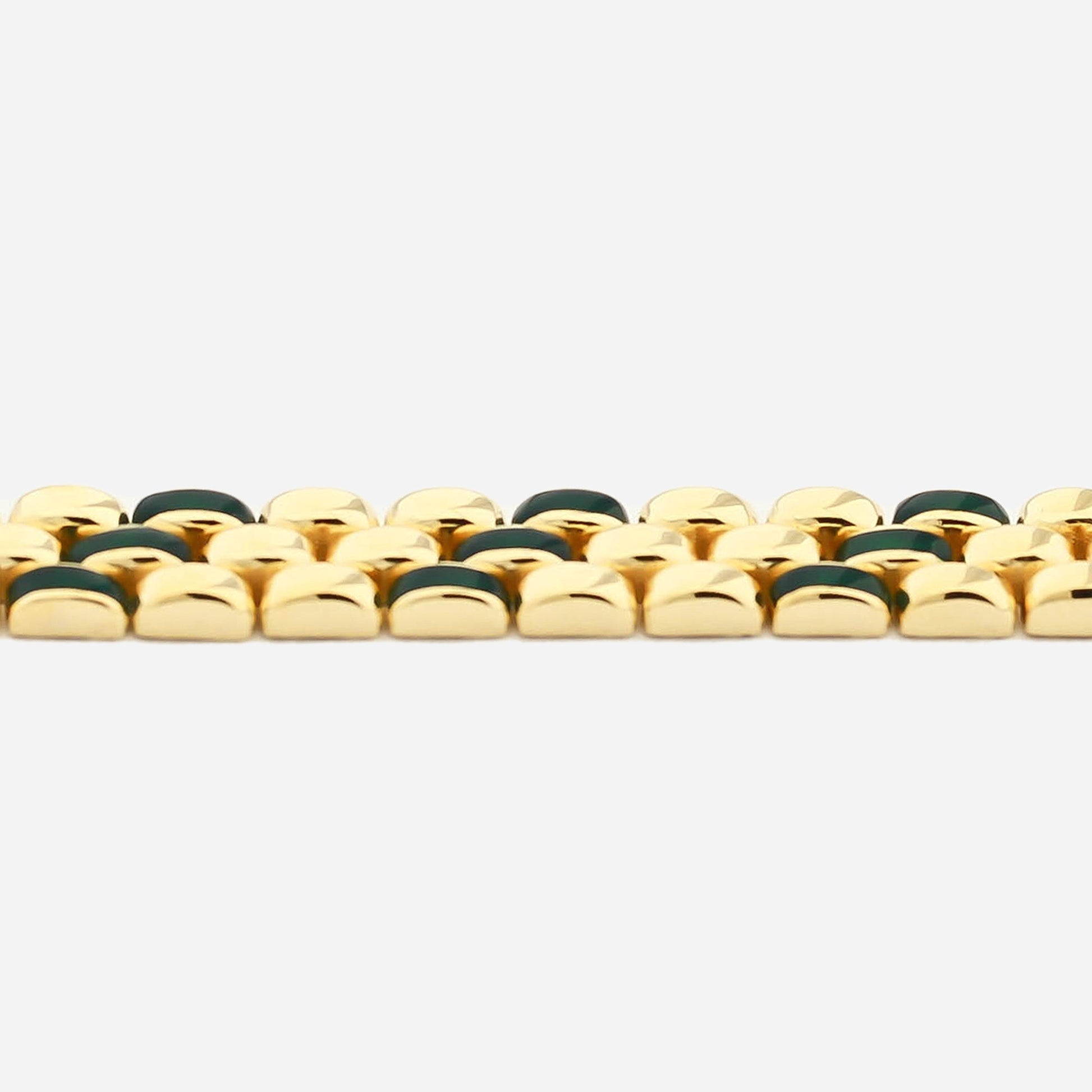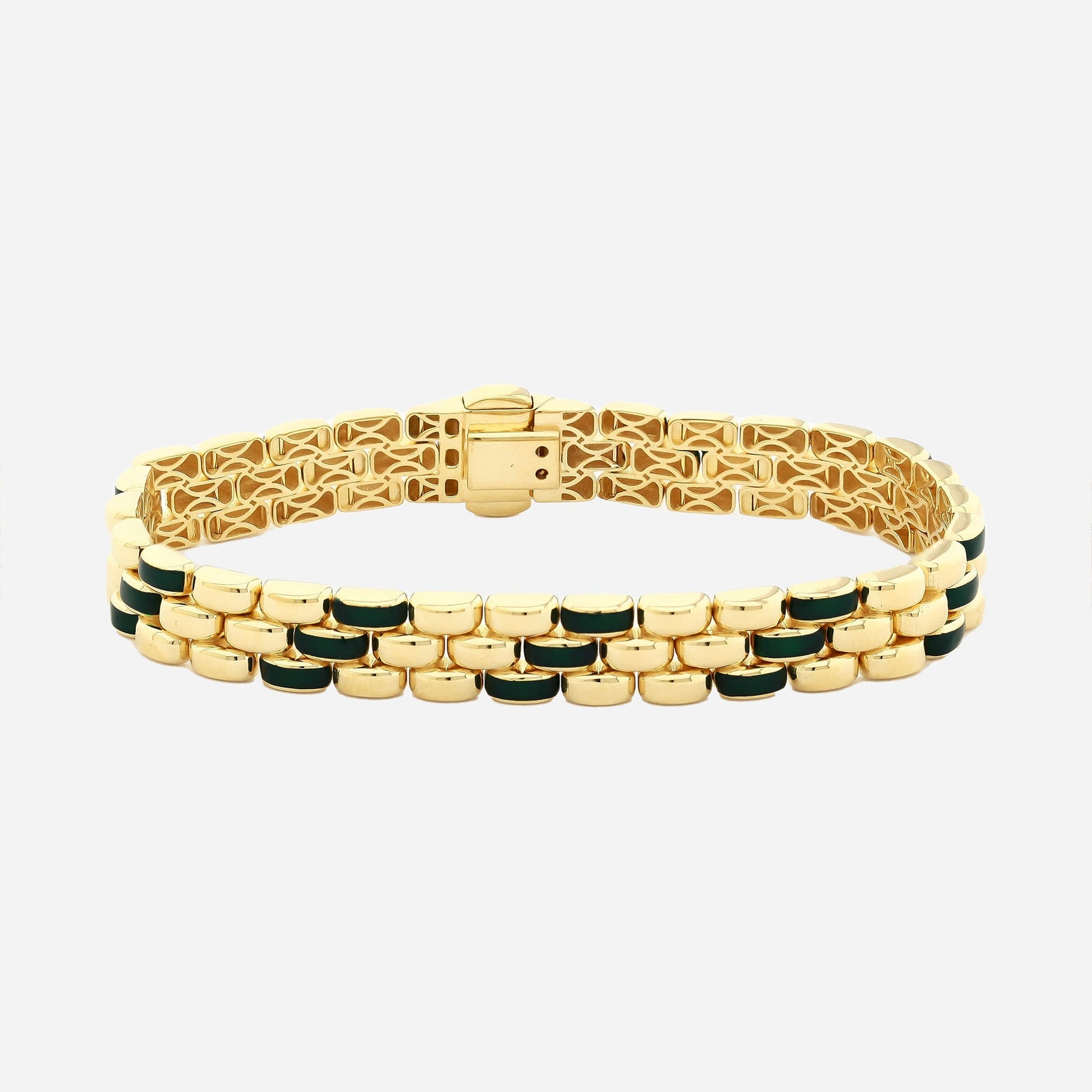 Dieses 9-mm-Armband aus 14-karätigem Gold von CHALIMU mit grüner Emaille ist ein exquisites Schmuckstück, gefertigt aus luxuriösem 14-karätigem Gold und einer wunderschönen grünen Emaille-Oberfläche. Die Breite von 9 Millimetern sorgt für einen dezenten, aber stilvollen Hauch von Eleganz. Perfekt für jeden Anlass.