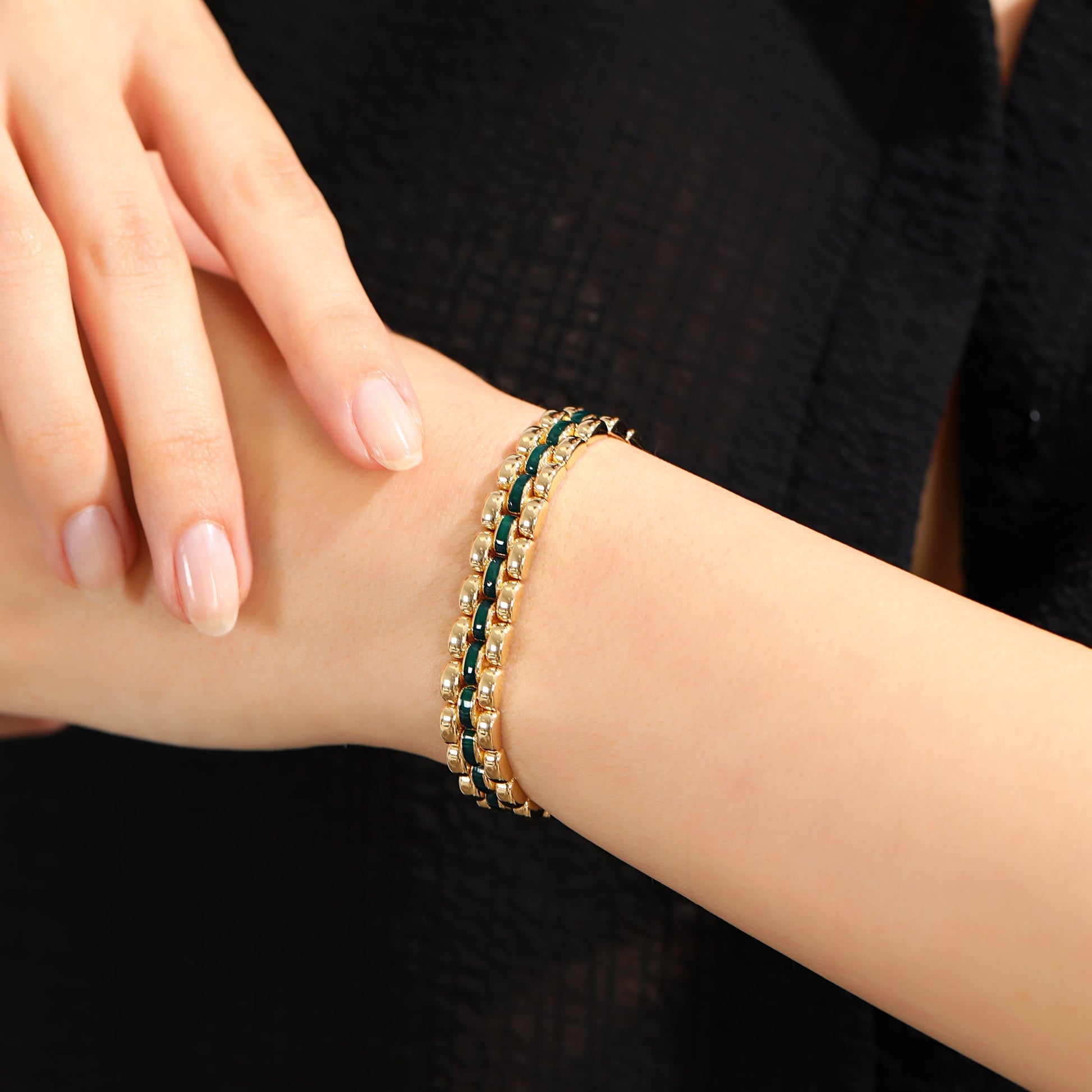 Bracelet CHALIMU 9MM en or 14 carats avec émail vert