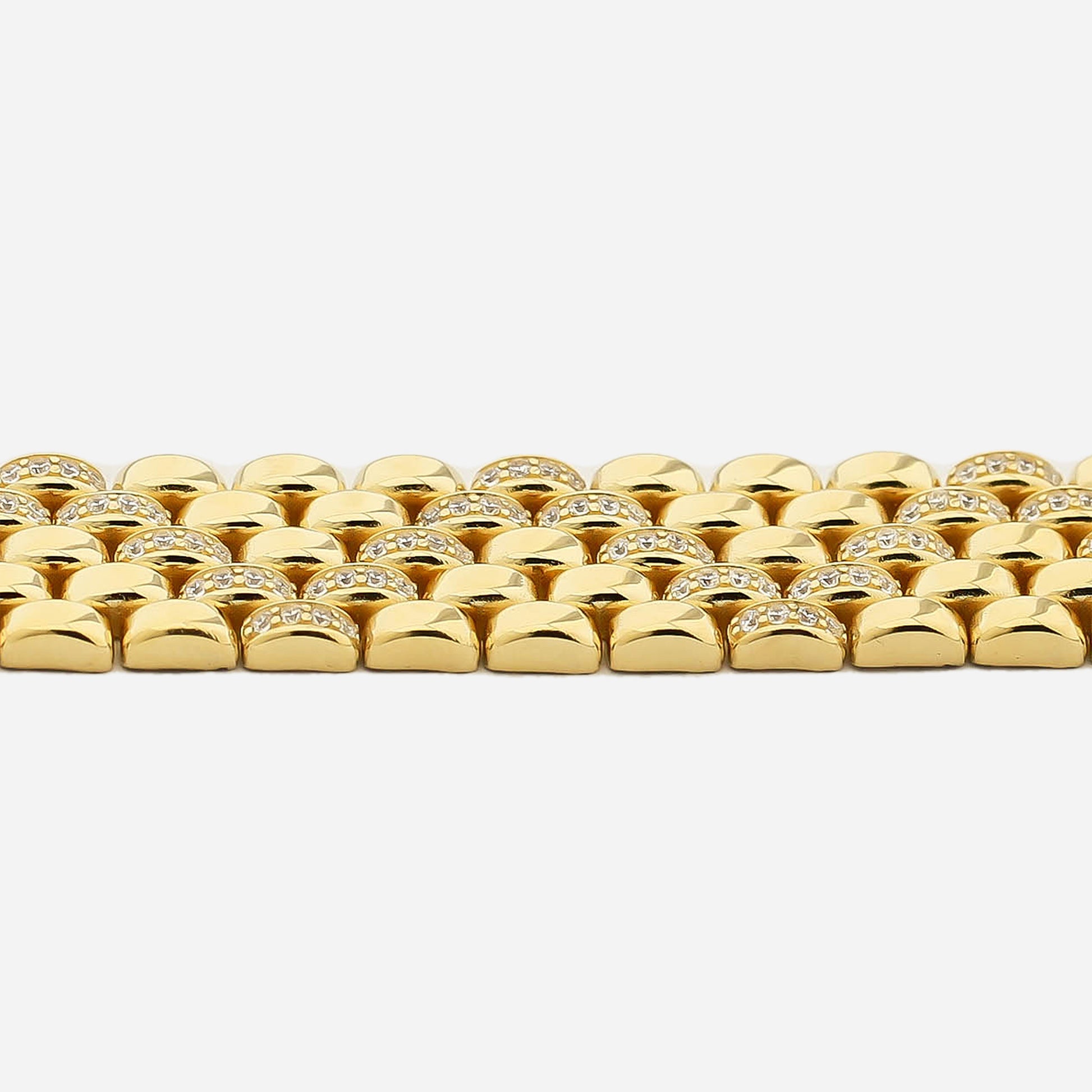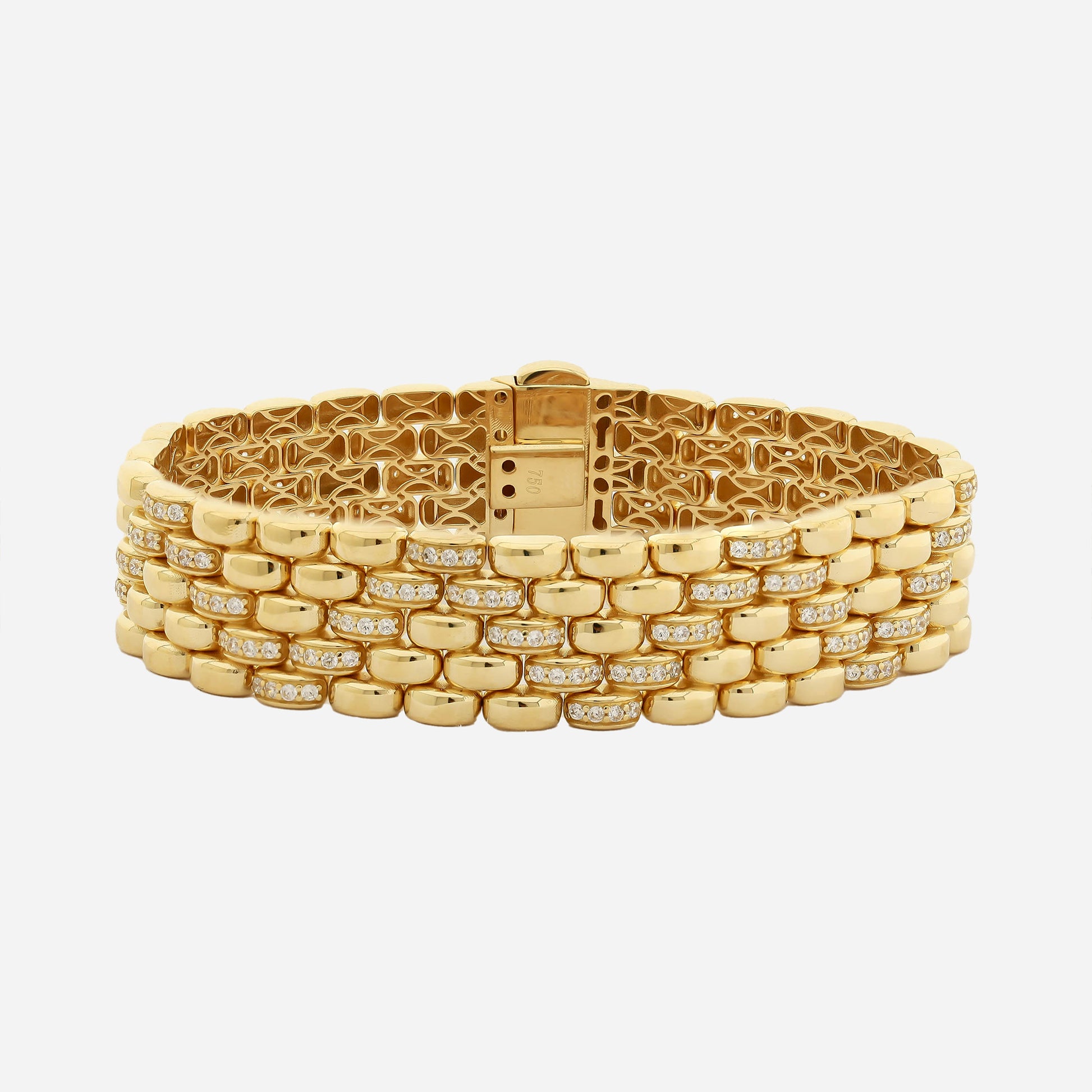 This luxurious bracelet from CHALIMU is crafted from 14K gold and features a stunning cross and gemstone design. The intricate link chain is 14 millimeters wide to make a bold statement, and the eye-catching design is sure to turn heads.